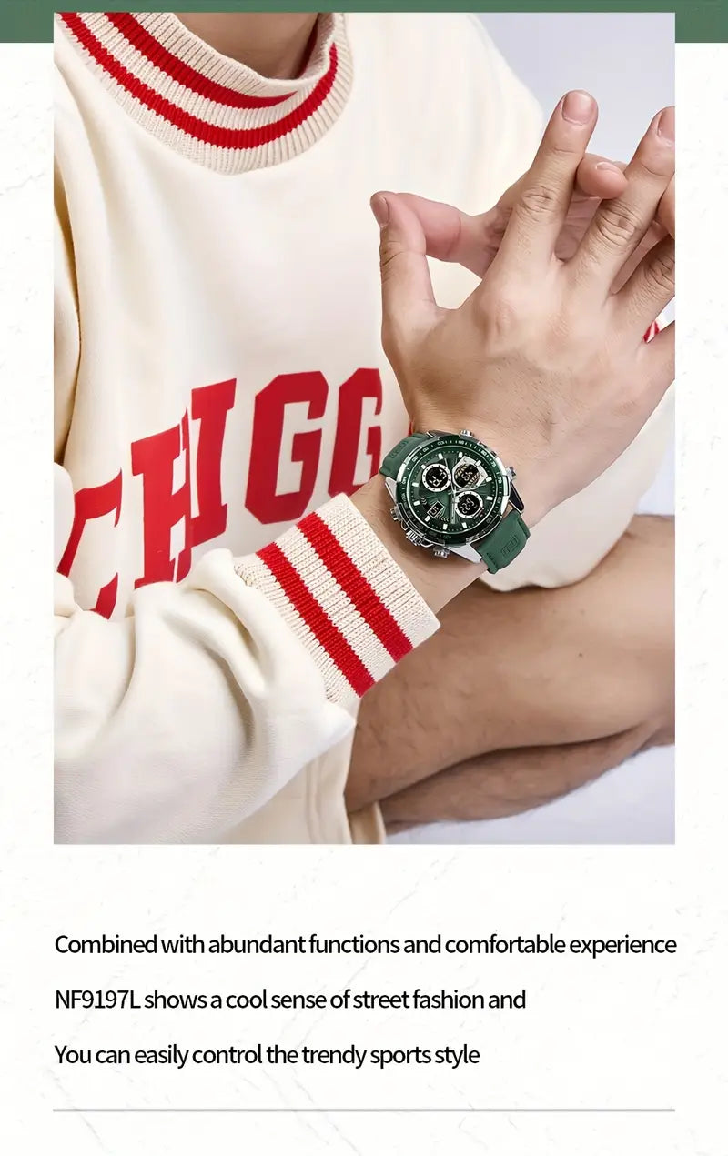 Multi-functional Quartz Men's Watch With Genuine Leather Strap