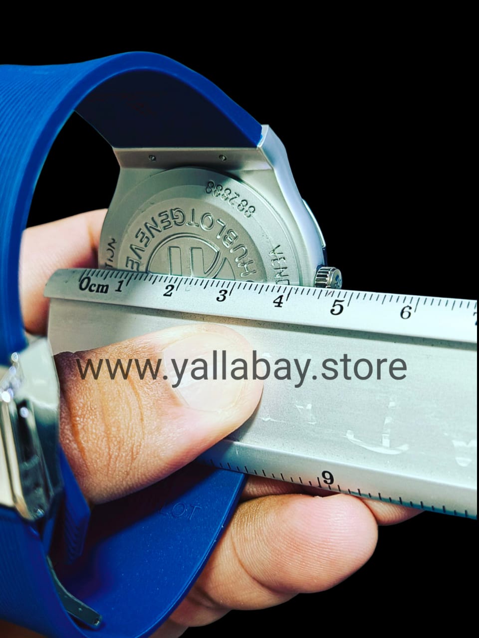 Elegant blue and black rubber strap with secure deployment clasp for a perfect fit.